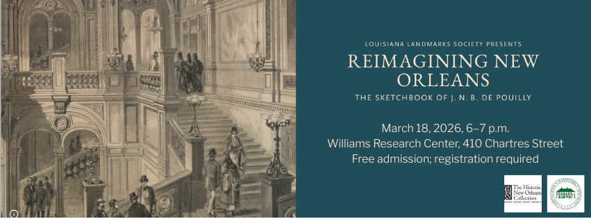 In this lecture, presented by the Louisiana Landmarks Society and hosted by HNOC, architectural historian Ann M. Masson will lead a tour through de Pouilly’s imagination, revealing bold ideas that never came to be.